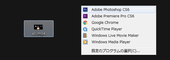 GIFアニメーションに変換したい動画(ここではMP4動画を用意)をPhotoshopで開きます。